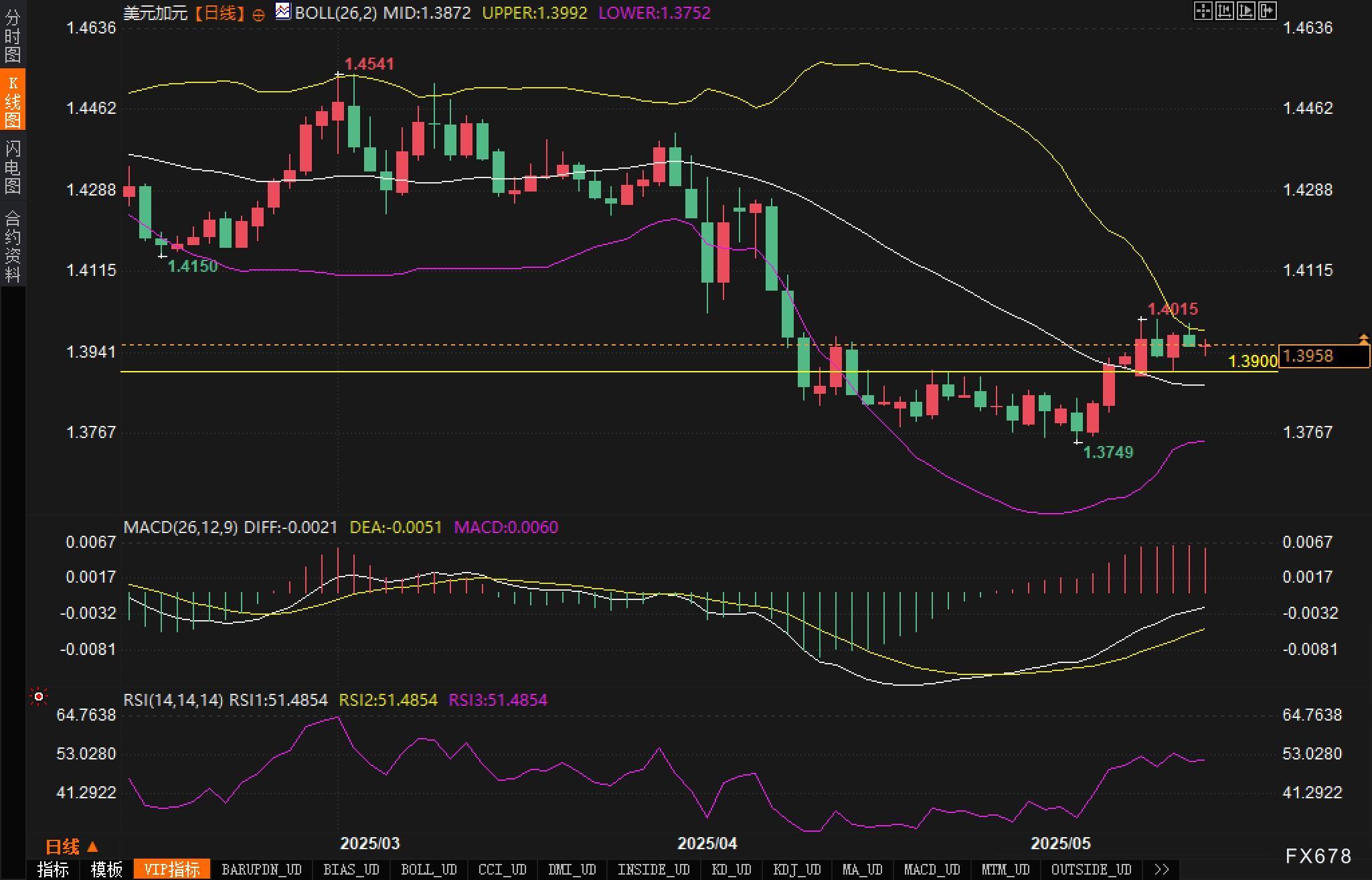 中期展望:考虑到加拿大央行与美联储的政策分化趋势,美元/加元中期有望维持上行倾向。若汇价能有效突破200日均线和1.4000关口,将打开通往1.4100甚至更高水平的空间。