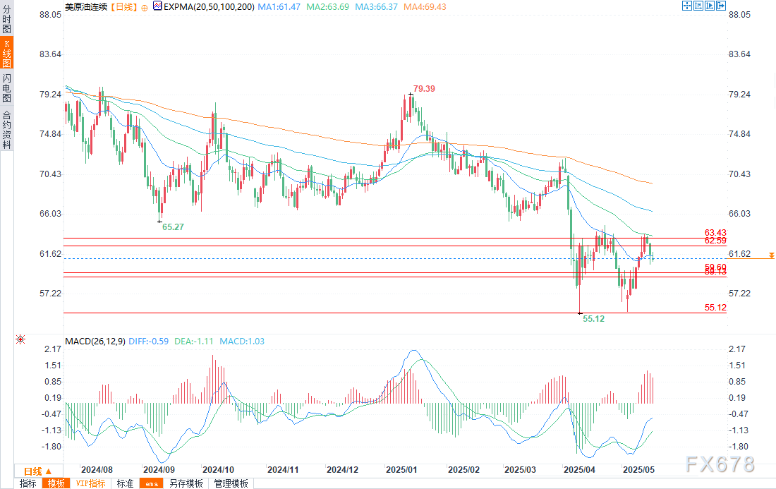 Pepperstone激石——周五(5月16日),WTI原油期货价格小幅上涨,交易员们努力打破连续两天的下跌态势,并在前期涨幅在技术阻力位附近失去动力后,重新评估未来走势。本周早些时候,WTI飙升至63.43美元,但在63.20美元的50日移动平均线处遭遇强劲阻力,同时来自62.59美元这一长期枢轴点的额外压力也对其造成影响。