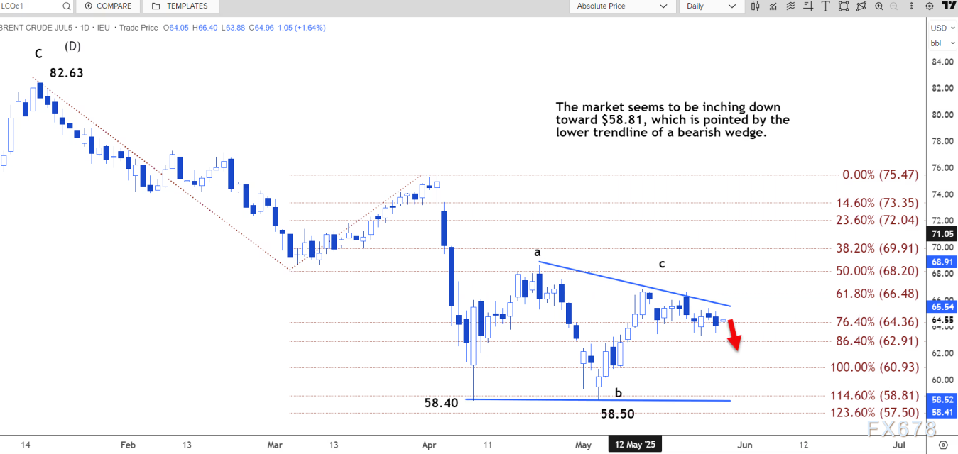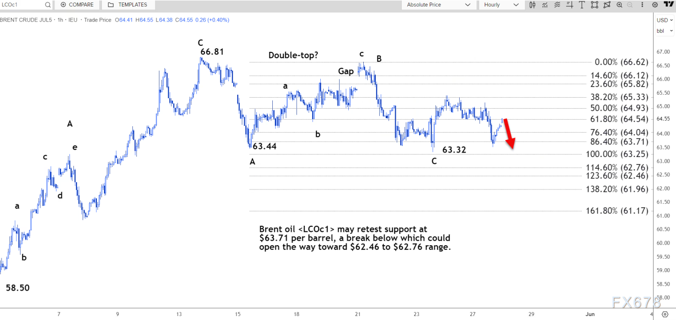 Pepperstone激石——周三(5月28日)亚洲时段,国际油价小幅上涨,布伦特原油7月期货目前交投于64.56美元/桶附近。