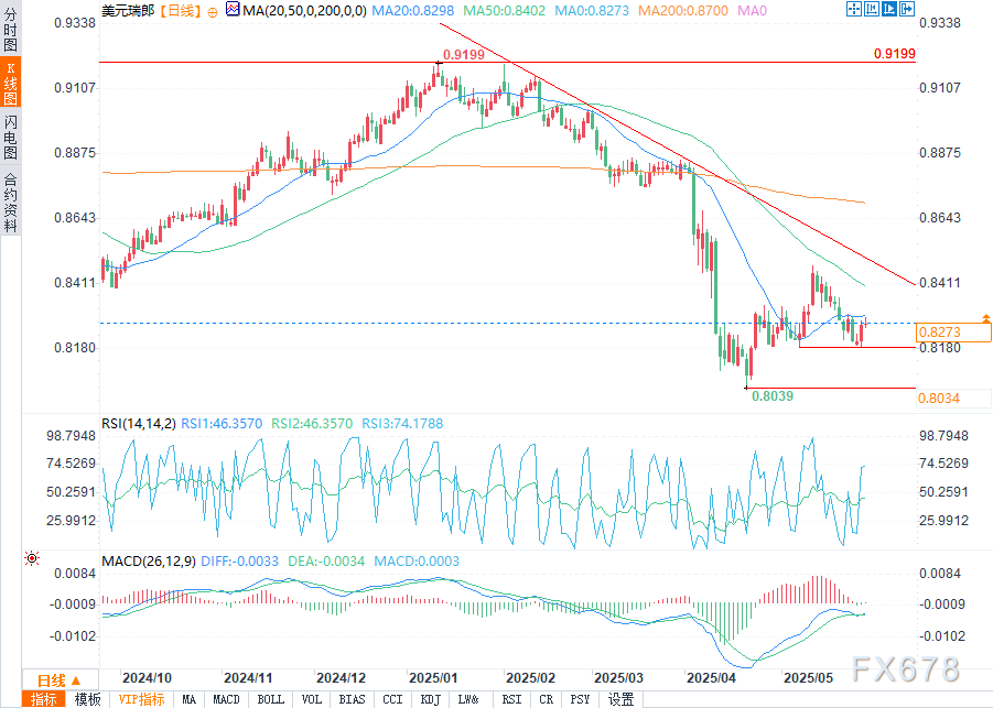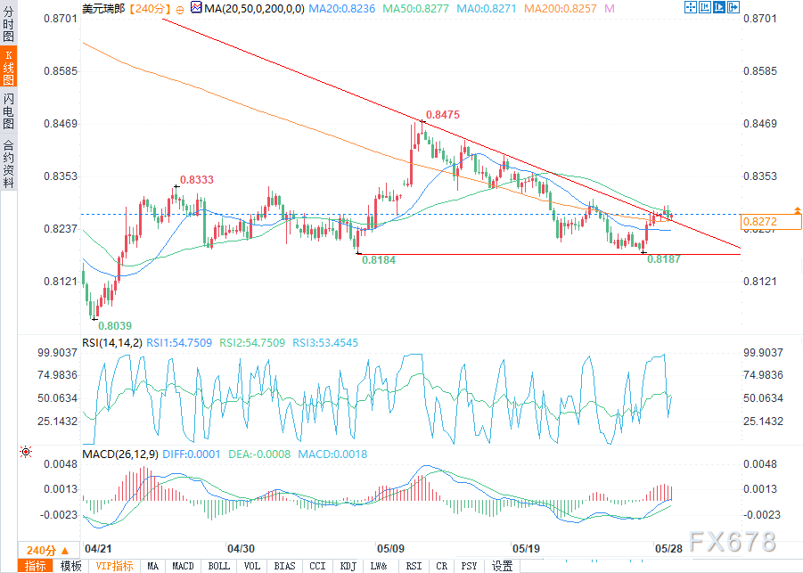 Pepperstone激石——周三(5月28日)欧盘时段,美元兑瑞郎价格波动较为频繁。早盘时段价格在一定区间内震荡,随后出现明显上升,达到相对高位后又开始回落,整体呈现出先扬后抑的态势。