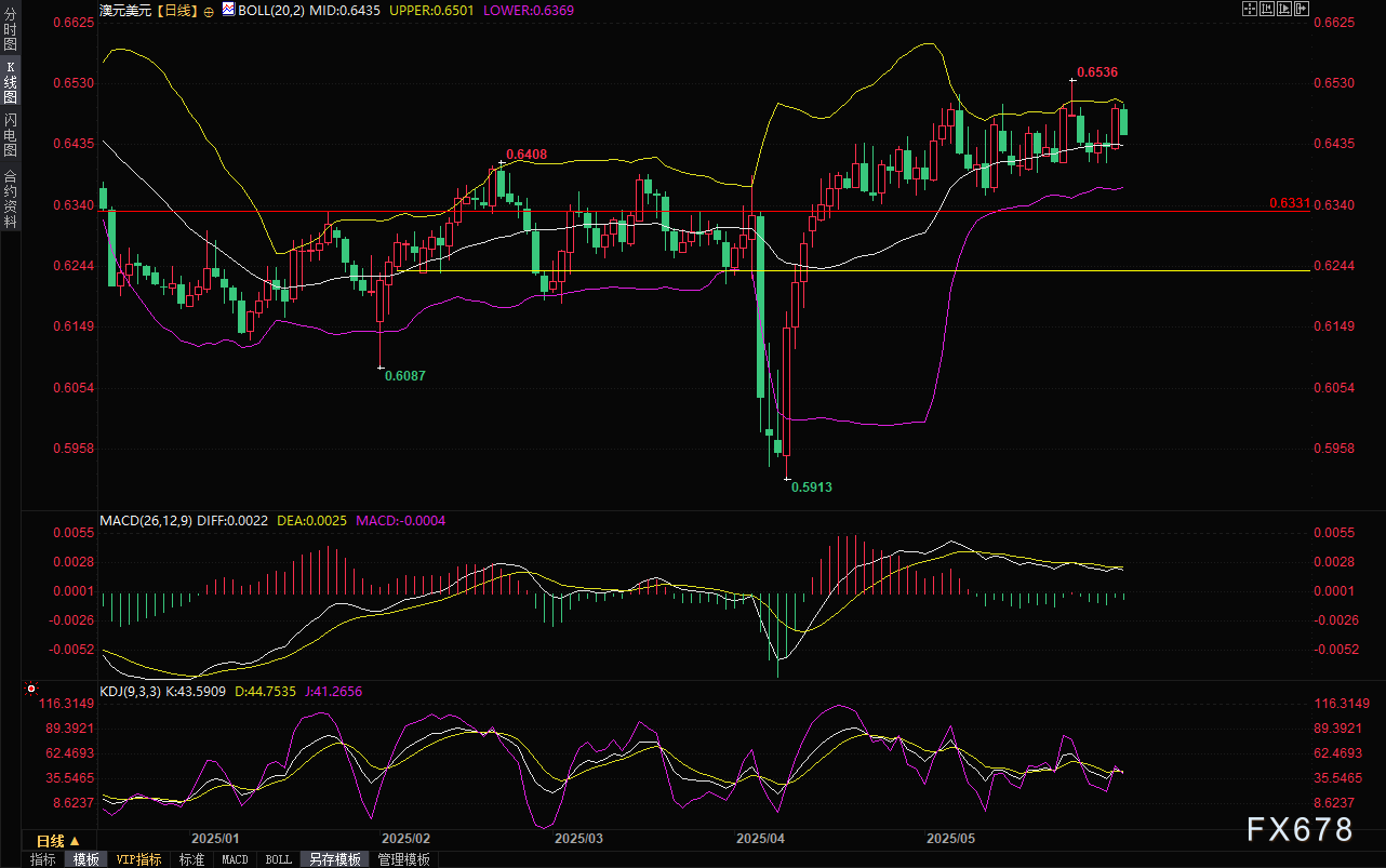 受疲软经济数据的拖累,澳元和纽元在周二亚市从周一触及的近半年高位回落,未能延续前一交易日的涨势。目前澳元兑美元下跌0.62%,报0.6454美元,未能突破关键阻力位0.6500美元,这是自5月初以来第四次受阻于该水平,导致投机者在该区间内频繁交易。纽元则短暂突破近期高点,触及六个月高位0.6054美元,但随后因获利回吐回落至0.60关口下方,目前交投于0.5994附近,跌幅约0.66%。尽管如此,若纽元能收于0.6000美元上方,未来可能进一步上涨至0.6120-0.6145美元区域。