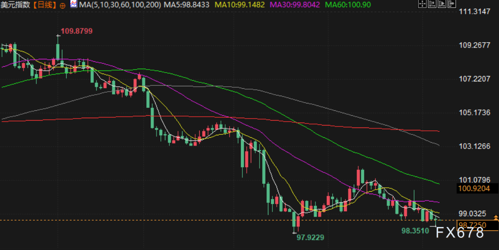 美元兑日元升 0.51% 至 143.49日元,兑瑞郎升0.16%至0.819。美元兑这两种避险货币今年迄今仍下跌约 9%。衡量美元兑一篮子货币汇率的美元指数下跌 0.09% 至 98.71,连续第二个交易日下跌。