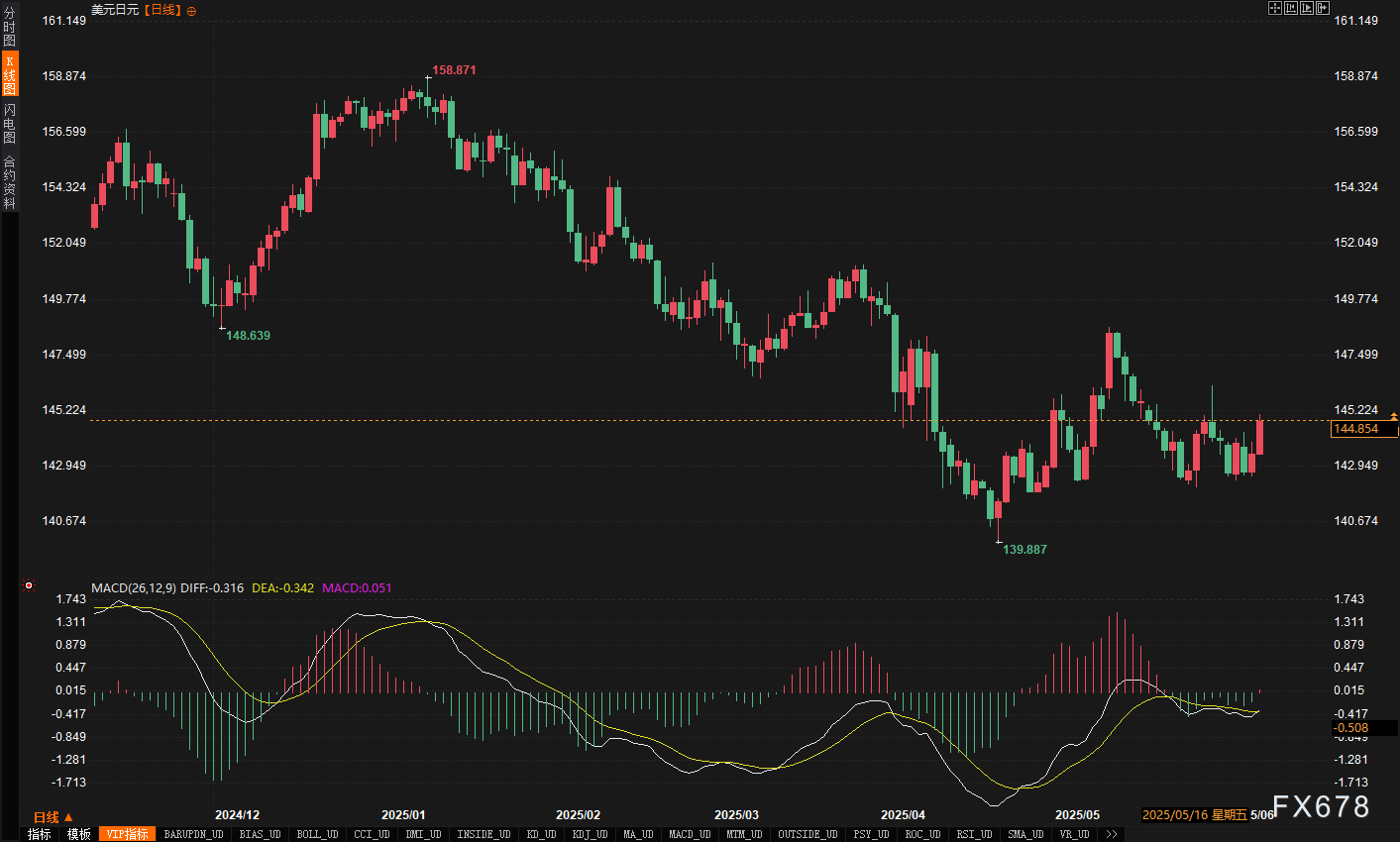美元兑日元本周震荡上行,周线上涨0.56%,周五收于144.87,连续第二周上涨。日元作为避险货币在本周表现疲软,反映市场对日本经济前景的担忧以及特朗普关税政策的影响。