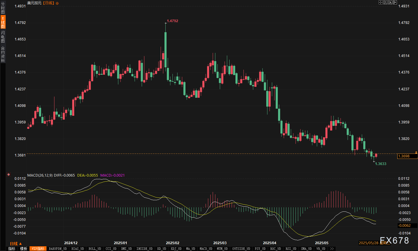 美元兑加元本周震荡下行,周线下跌0.29%,反映加元在加拿大央行政策和经济数据支持下的相对韧性。