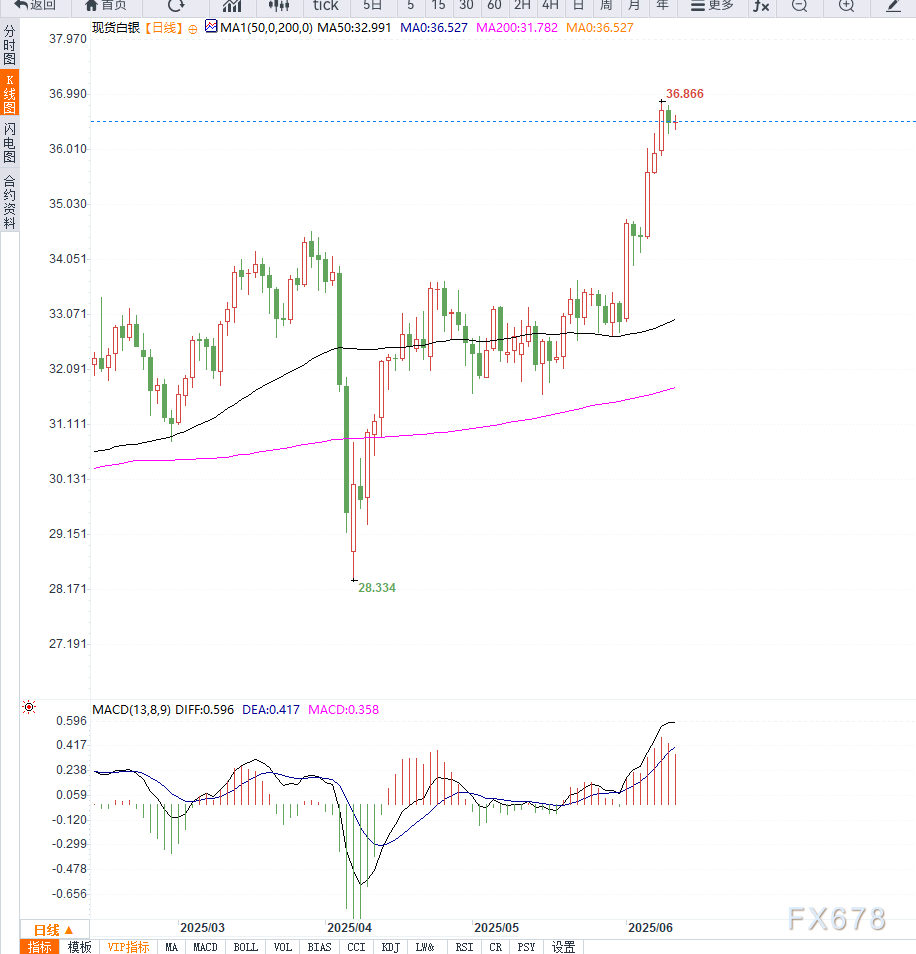 Pepperstone激石——银价在关键通胀数据出炉前陷入观望整理。周三欧洲时段,银价在36.50美元上下小幅波动。市场情绪谨慎,等待即将公布的美国5月CPI数据,预计该数据将决定美联储短期政策方向,并直接影响包括白银在内的大宗商品价格。