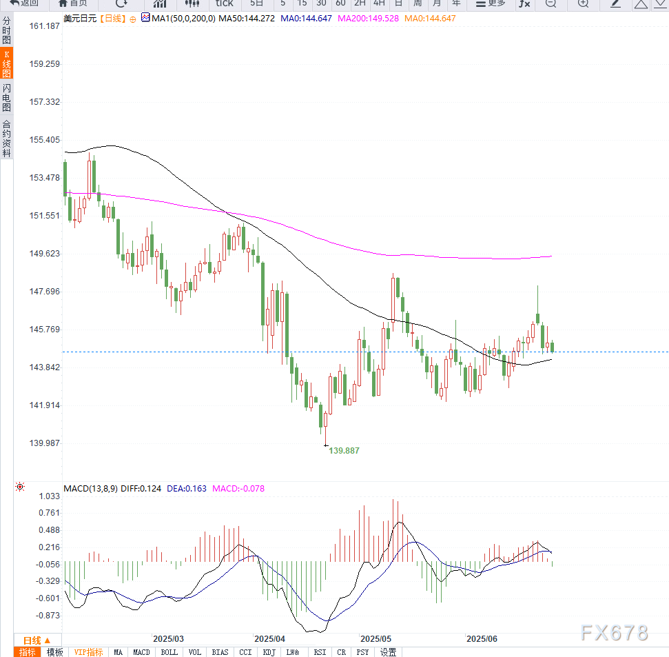 当前,美国总统特朗普加大对美联储主席鲍威尔的批评,甚至公开表示正在考虑人选替换现任主席,这一言论引发了市场对美联储独立性的担忧,并加剧了对降息的预期。这一背景下,美元兑日元承压下行。