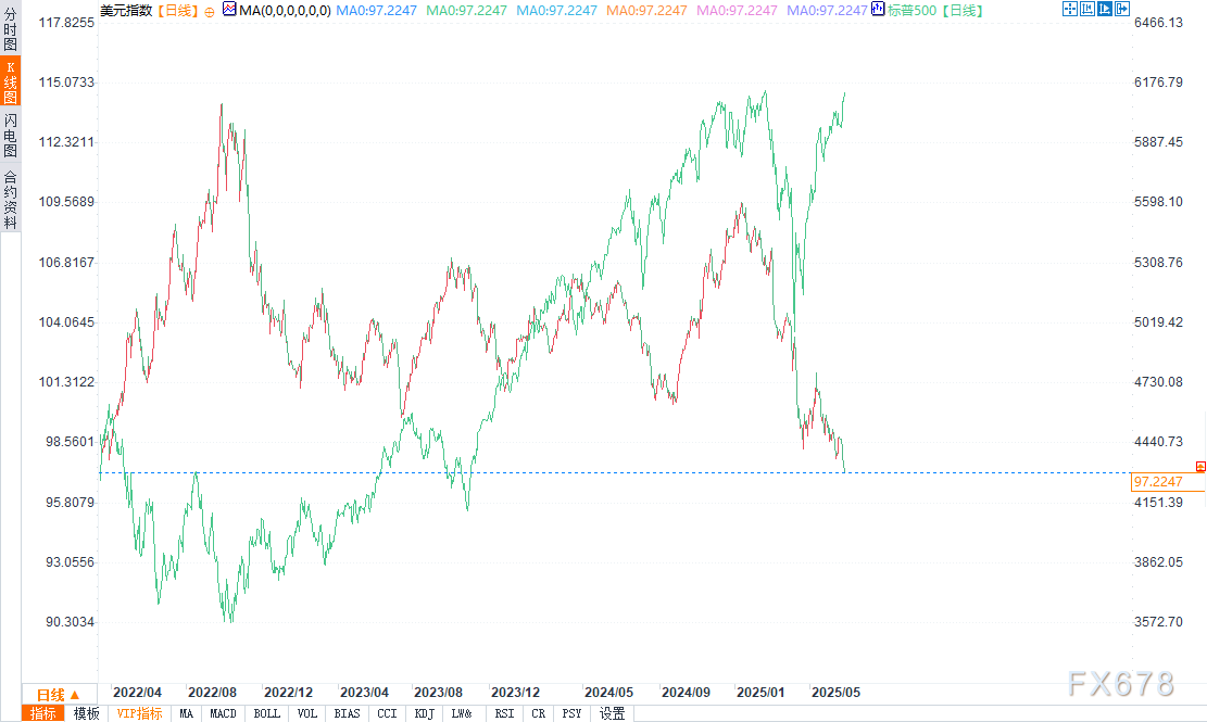 Pepperstone激石——中东冲突曾一度重塑了美元的避险资产地位,但这也成为了其走弱的诱因。随着全球风险偏好升温,美元与美股指数的负相关性导致美元指数触及三年低点。投资者将以色列与伊朗之间“十二日战争”的?;鹗游逋恢战?正纷纷买入股票。