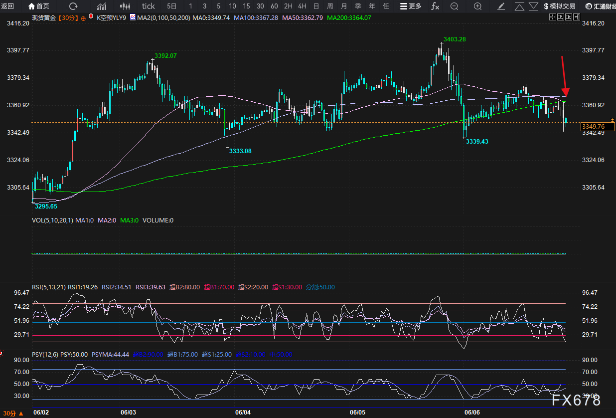 Pepperstone激石——6月6日美市更新的黄金、白...